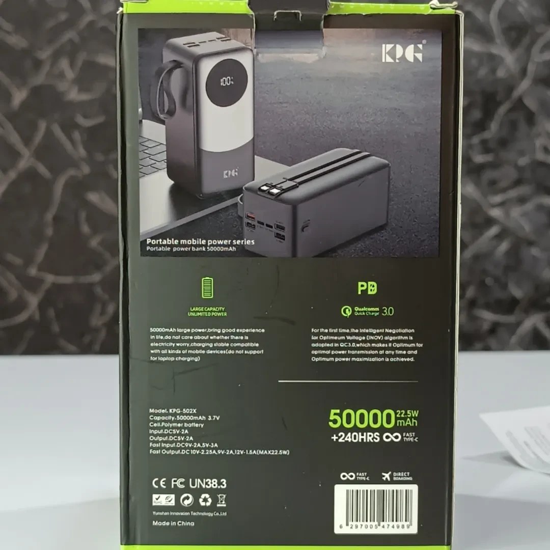 با پاوربانک کینگ پاور مدل KPG-502X، دیگر نگران تمام شدن شارژ دستگاههای خود نباشید! با ظرفیت فوقالعاده 50هزار میلیآمپر، امکان شارژ همزمان چند دستگاه را فراهم میکند. طراحی شیک و مقاوم، همراه همیشگی شما در سفرها و فعالیتهای روزمره. همین حالا خرید کنید و همیشه پرقدرت بمانید!